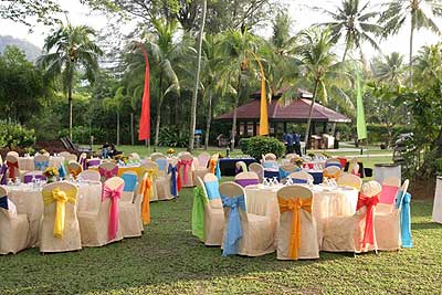Although certain decorative items such as flowers are strictly for purchase, some such as linen, drapes and tableware can be rented for your occasion. Among them include :
